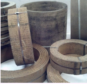 Balata Tramada, para la industria minera, petrolera, de la construcción, marítima e industria azucarera grado alimenticio. A partir de hilaturas de fibras de vidrio y fibras aramidicas con refuerzo de alambre metálico, impregnados con elastómeros y aditivos de fricción curados en hornos hasta obtener una estructura resistente y flexible que permiten adaptar fácilmente el material a los diferentes diámetros de zapatas o de cinchos.